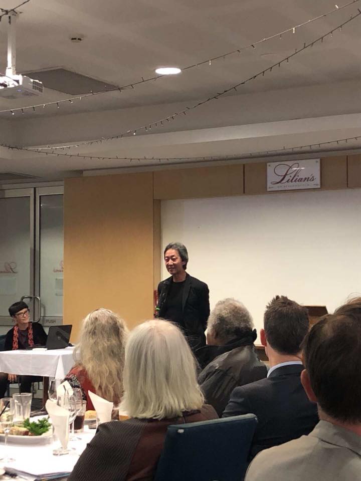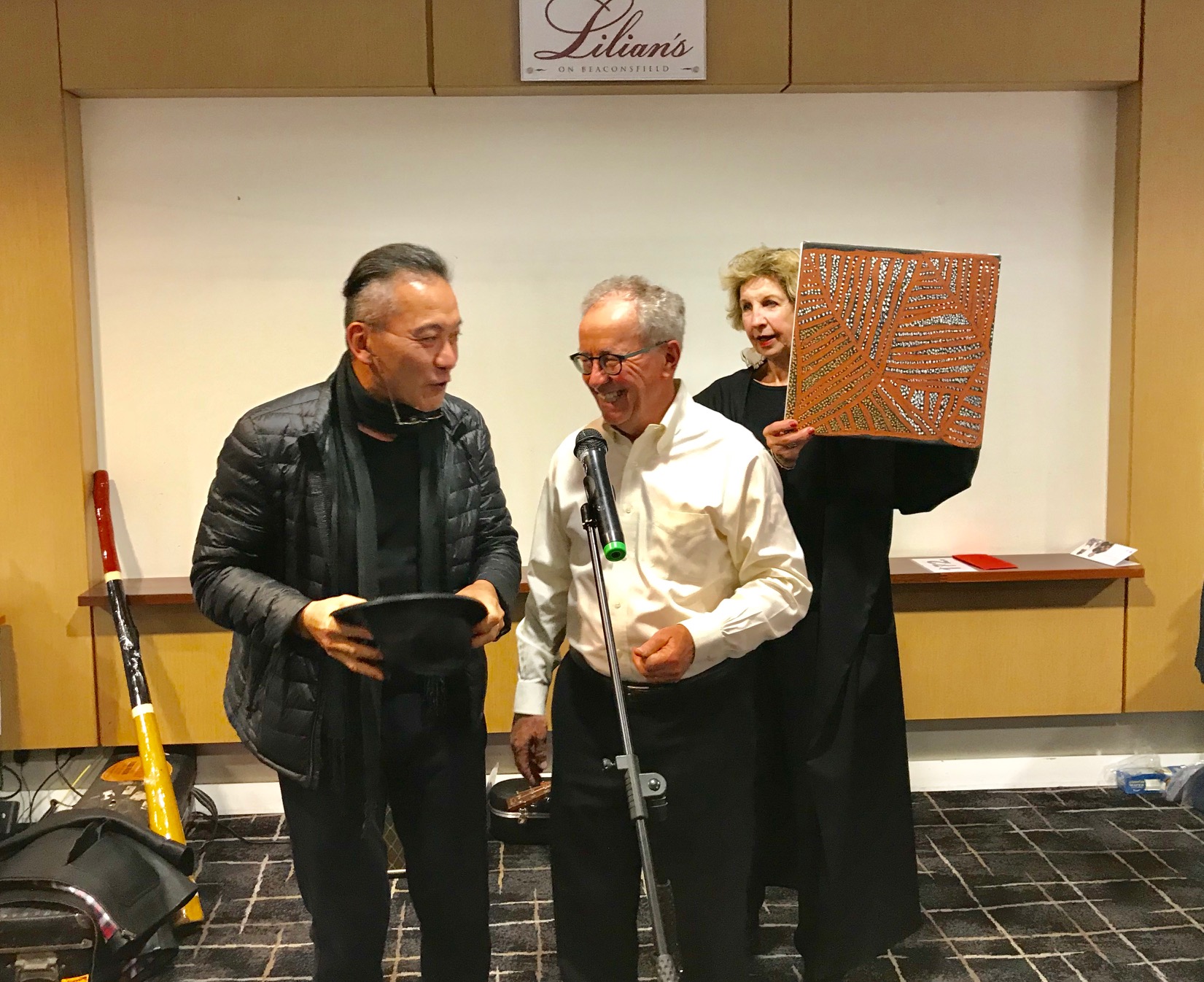 Ah Xian, another of our Patrons and John Coffey, Treasurer of the ABF closed the event by announcing the winner of the lucky door prize, a beautiful Tiwi artwork by Jane Tipuamantumirri.