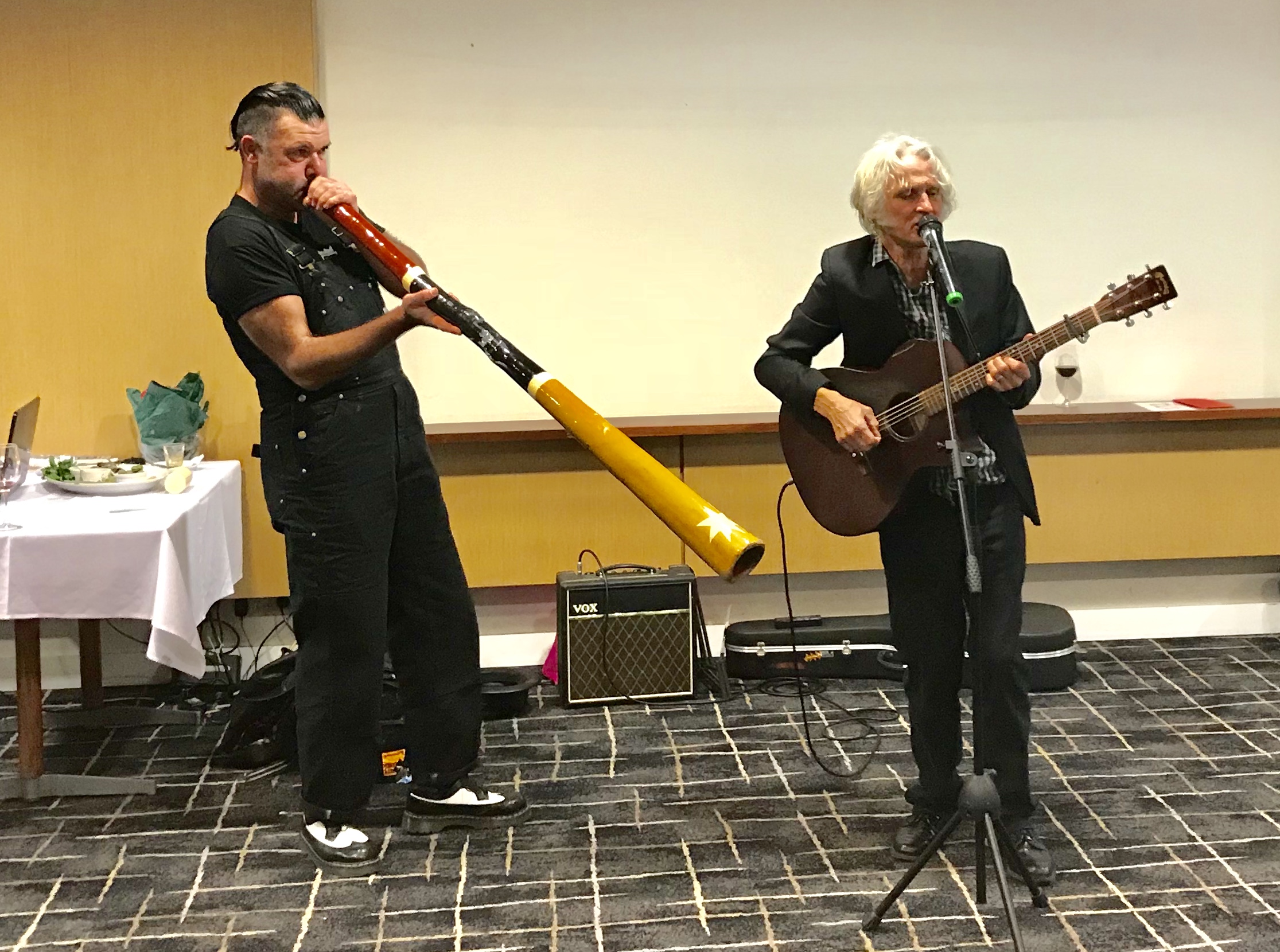 The ABF was honoured to have Blak Douglas and Peter Doherty (Dog Trumpet and Mental as Anything) to give live performances. Blak Douglas performed with the didgeridoo and he explained how he first started to learn the instrument. Peter O’Doherty performed a few of his songs and he also jammed with Blak Douglas in a unique first time performance solely for the Aboriginal Benefits Foundation.